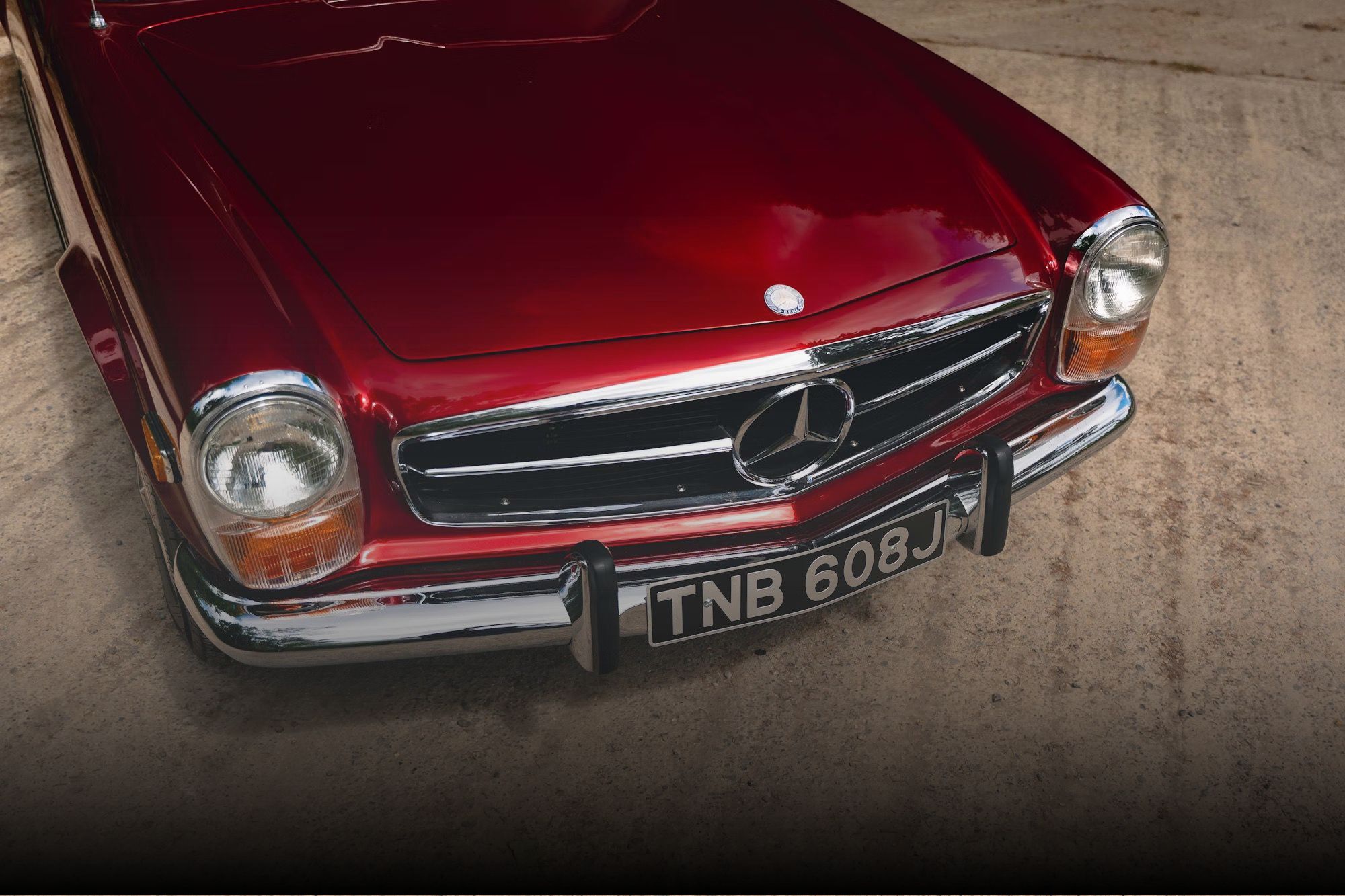 Apodo “Pagoda”: Su techo duro cóncavo, diseñado por Paul Bracq y Béla Barényi, que recuerda a las pagodas orientales.